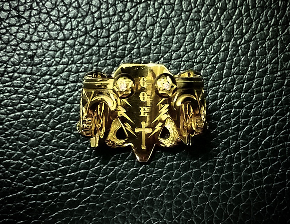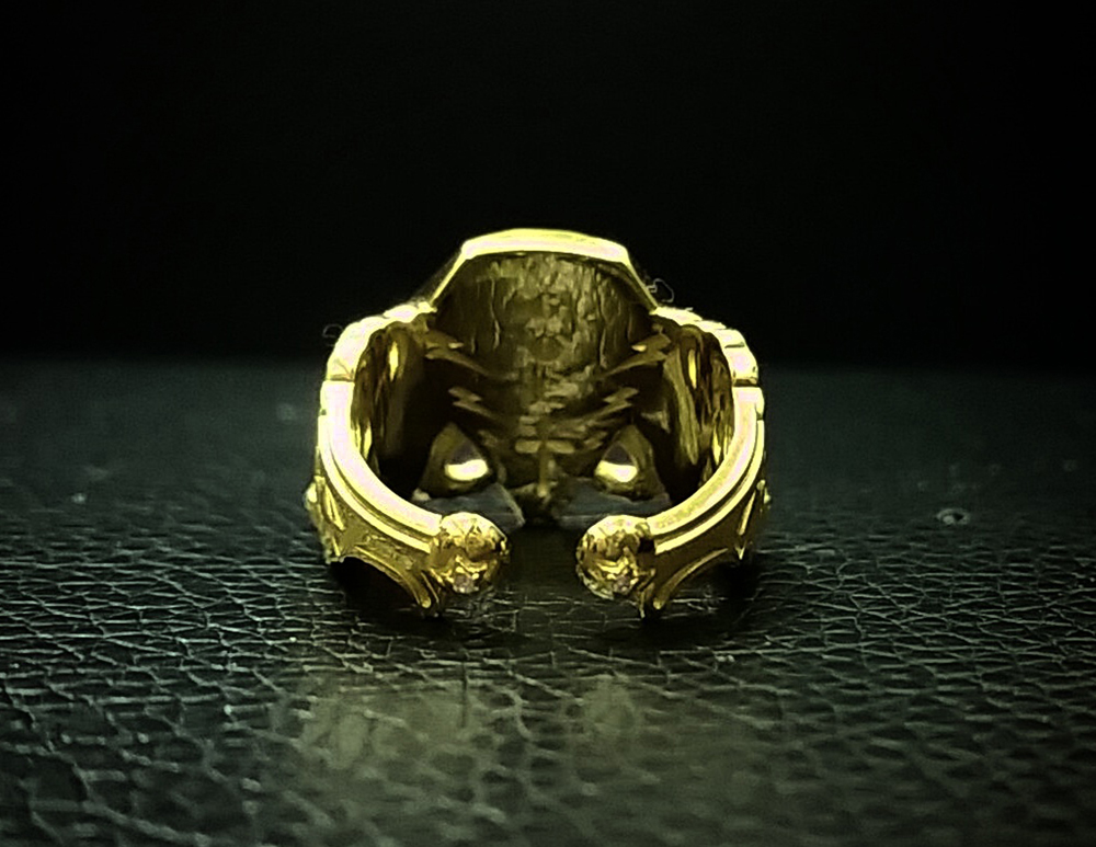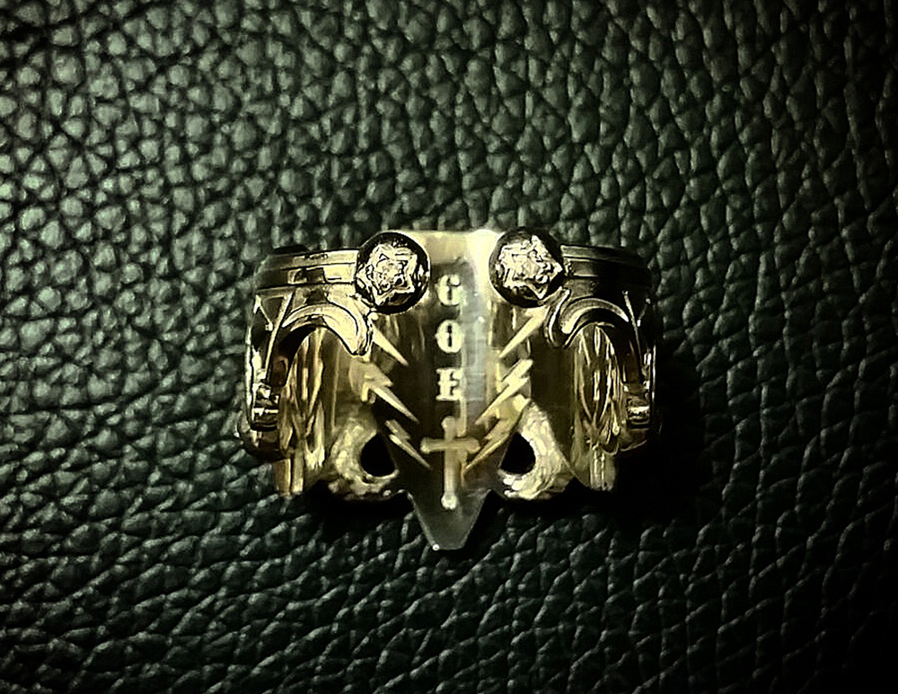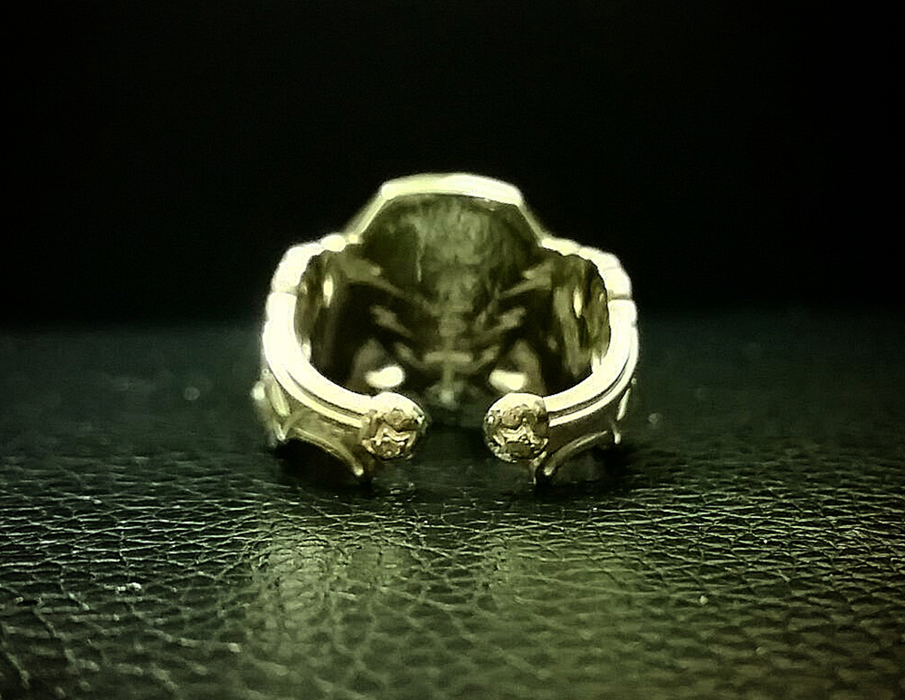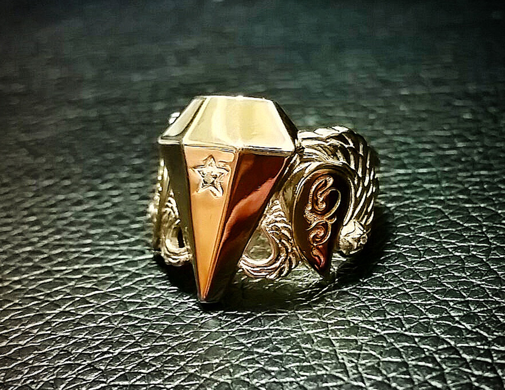 RING内側には上記にあげた6つ富をイナズマで彫り「その富が稲妻の如く訪れるように」と願いを十字架で表現。