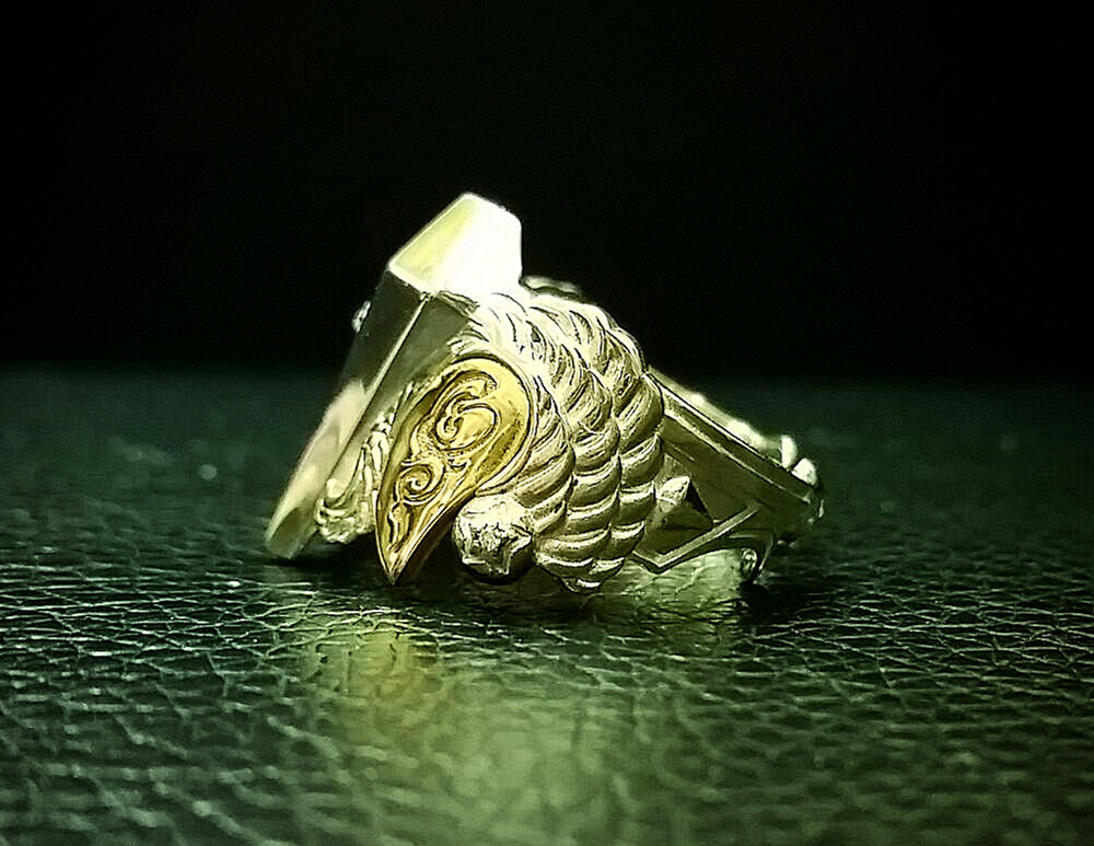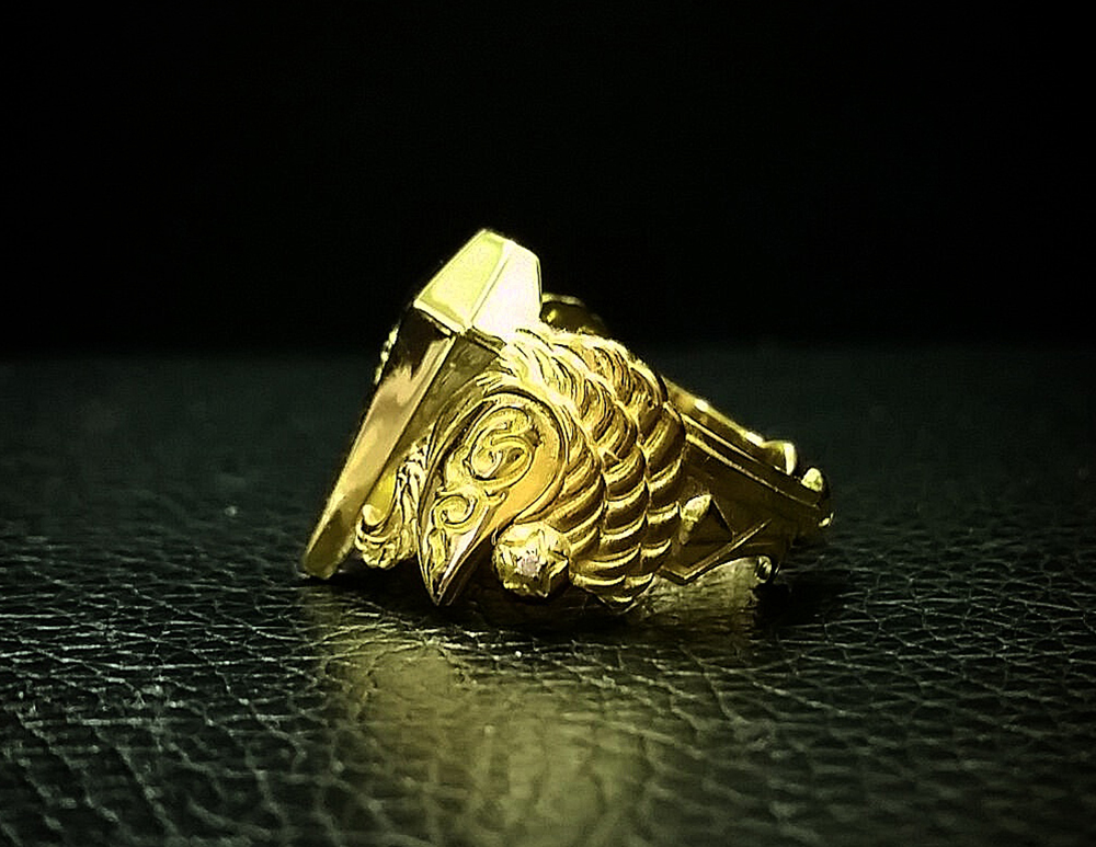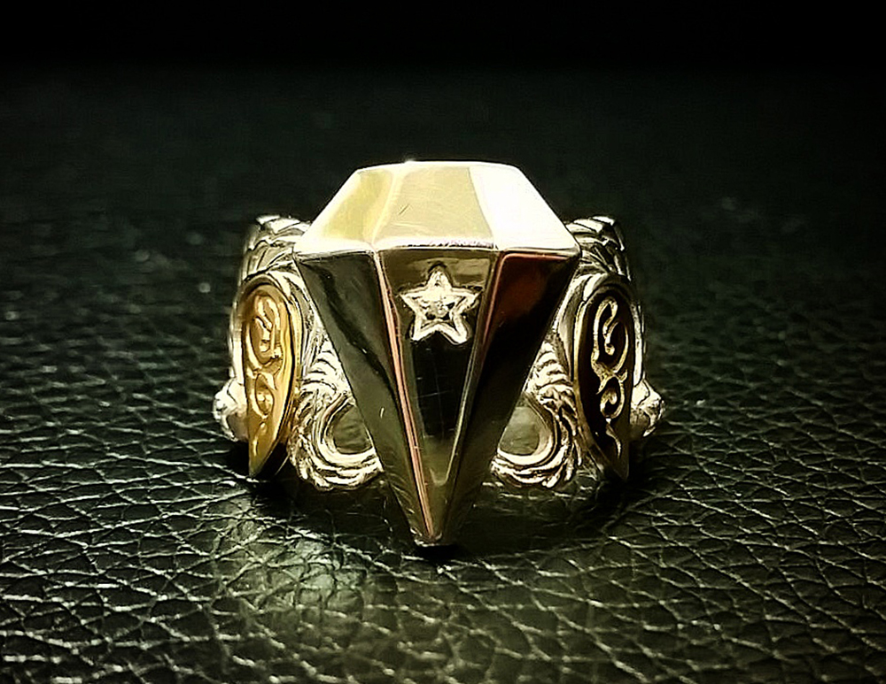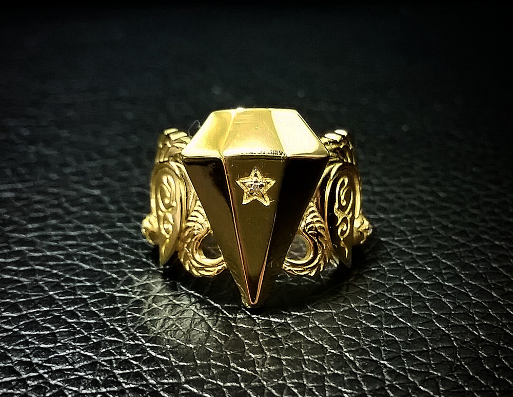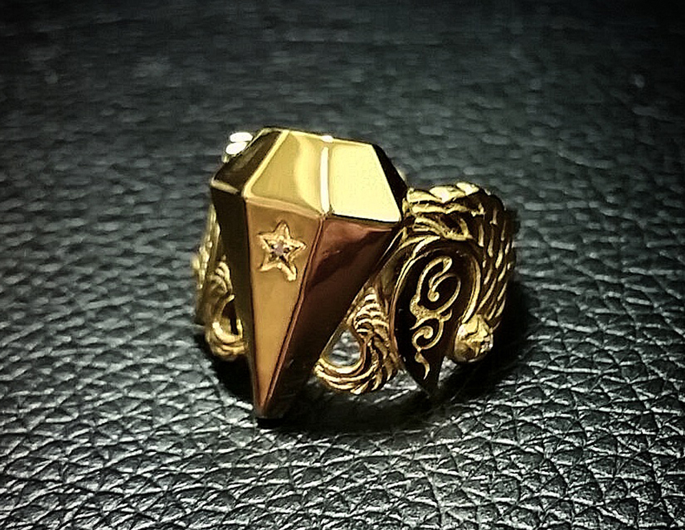 表面の大きなダイヤカットは、前途した欲に打ち勝った人のみぞ得る、大きな富を表現。
